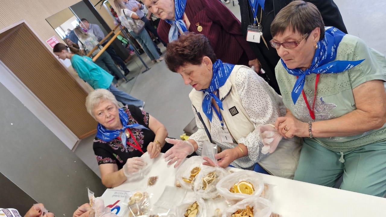 Белинский район представляла делегация из трех человек, состоящих в группе «Здоровье»: Вера Тюменева, Любовь Михеева и Татьяна Крехтунова. Они приняли участие в мастер-классе «Подарок бойцу». Вместе с волонтерским отрядом «Серебряные нити» пробовали плести маскировочные сети, учились упаковывать фрипсы, изготавливать «сухой душ» - комплект для личной гигиены, учились отливать блиндажные свечи.