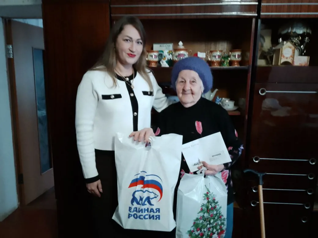 Поздравительное письмо от Президента Российской Федерации Владимира Путина и памятные подарки ей вручили первый заместитель главы местной администрации Андрей Андрюшин, директор центра социального обслуживания населения Белинского района Екатерина Чудаева и глава администрации Студенского сельсовета Виктор Журлов.